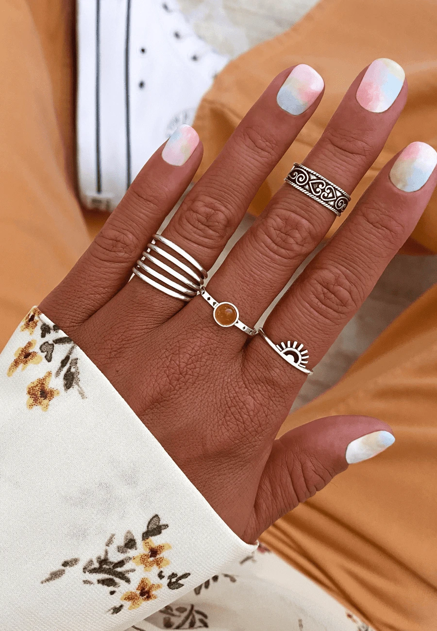 El AILESH está hecho a mano y en Plata de Ley 925. En el centro del anillo luce la piedra con forma redondeada, envuelta por una base finita de plata. Otra característica especial de este anillo son los rombos que hay grabados en el arco: pequeñitos, consecutivos y con profundidad.