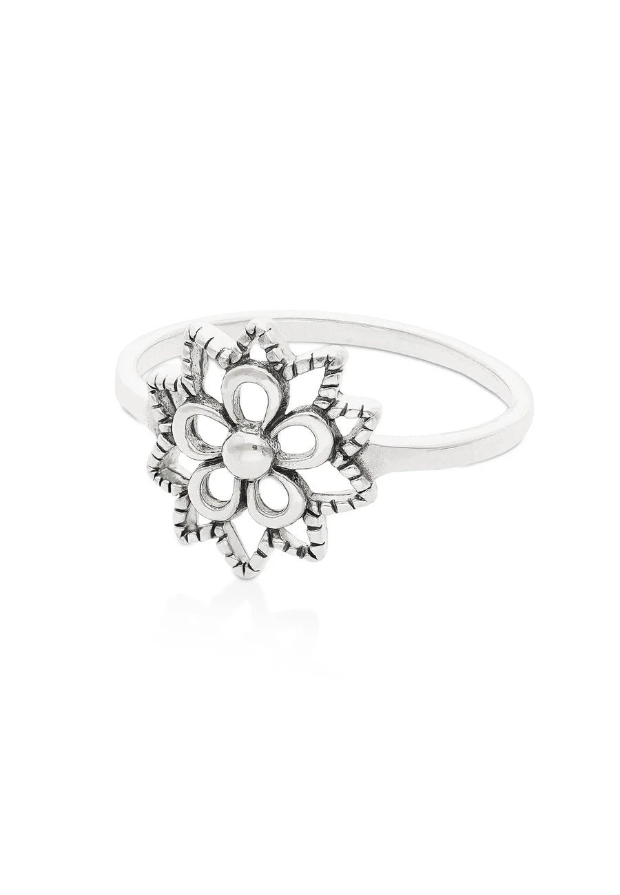 El anillo ANKUR tiene forma de flor con sus hilitos de plata que la conforman, el resultado es superbonito y original. Queda muy elegante con sus terminados interiores en redondo y sus esquinitas más pronunciadas en la parte exterior.