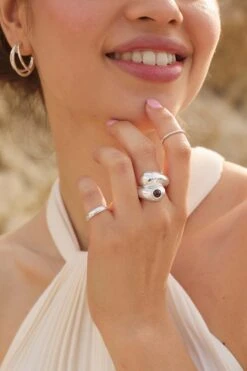 Nuestro anillo Darshan maxi de plata de ley 925, una pieza impresionante que combina la elegancia de la plata con la intensidad del granate deslumbrante. Este anillo presenta un diseño chunky muy en tendencia, perfecto para quienes buscan una joya audaz y sofisticada.