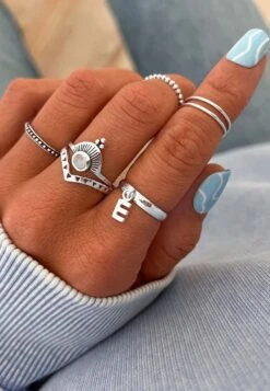 El DEVANAGARI es un anillo ajustable, hecho de Plata de Ley 925 y caracterizado por lucir un colgante de inicial. Podrás elegir la letra que quieras de la A a la Z. Al ser un anillo sin talla, podrás ajustarlo siempre que quieras y llevarlo en cualquier dedo. ¡Puedes llevar tu inicial, la de una persona querida, la de tu mascota… ¡Se convertirá en un anillo muy especial!
