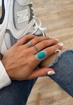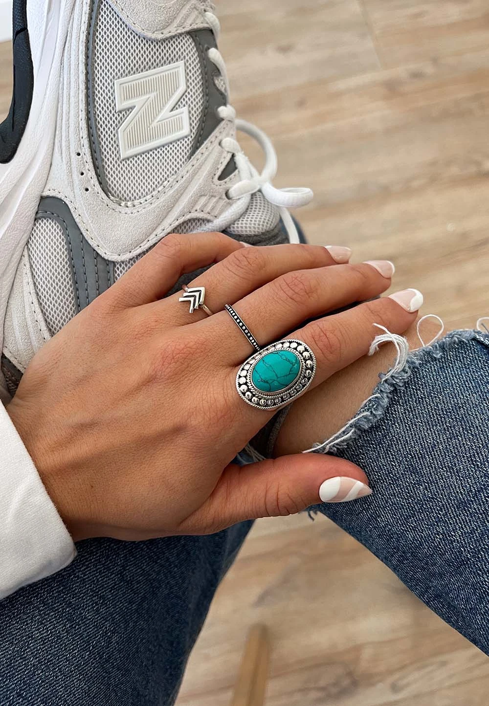 En su totalidad es un anillo de Plata de Ley 925, como todas nuestras joyitas. Su estilo minimalista y elemental combina genial con otros anillos más llamativos.