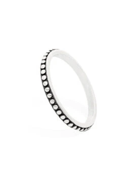 El anillo ETNIS es un anillo finito con un grabado muy detallado y auténtico. Lo conforman una secuencia de bolitas de plata que resaltan sobre un fondo más oscuro.