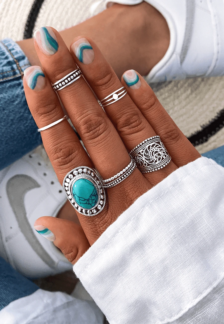 El anillo GARMEE es un anillo de Piedra Turquesa y Plata de Ley 925. Esta joyita es superbonita y original, su color azul verdoso llama mucho la atención.