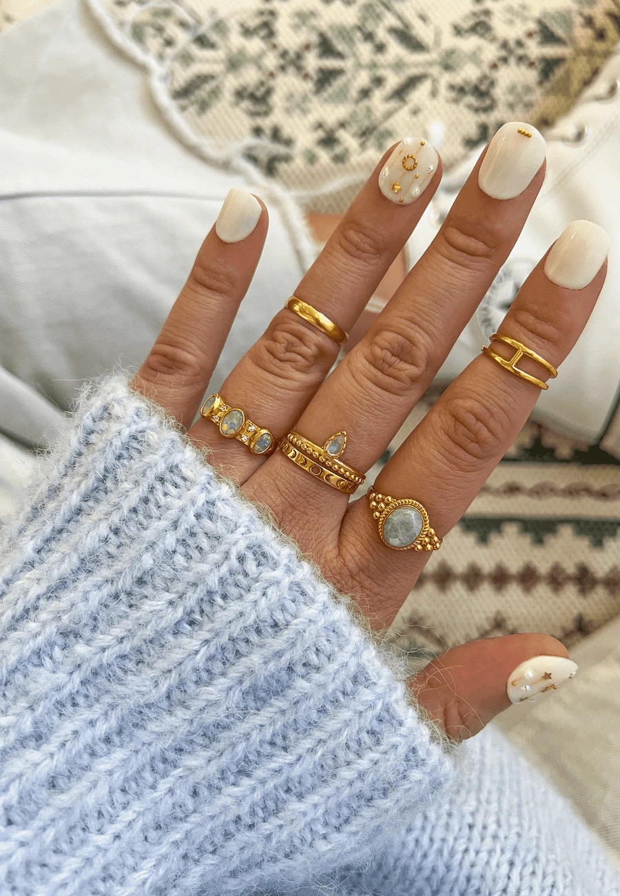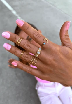 El anillo SHANATA CHAPADO EN ORO es un anillo precioso que llama muchísimo la atención. Tiene tres preciosos ópalos en el centro del anillo que aportan luz y brillo. Entre cada ópalo hay dos circonitas superelegantes.