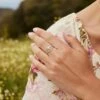 El diseño del TEJ consta de una parte hueca en el centro conectada por la Piedra Luna ovalada. La estructura del anillo termina en pico en sus extremos y está decorada por una finita hilera de bolitas pequeñitas en el interior.