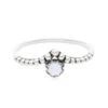 En el otro extremo del anillo, una hermosa piedra turquesa Amazonita se asienta en una delicada configuración. La turquesa, con su tono azul verdoso característico, agrega un toque de color vibrante y sofisticado, evocando la serenidad y la frescura del agua cristalina.