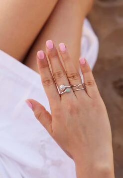 El Anillo Vikshepa de plata de ley 925, con un acabado abierto. En uno de los extremos del anillo, se encuentra una pequeña y encantadora concha marina, que captura la belleza natural del mar. La concha está finamente detallada, con líneas suaves y una textura realista que la hace parecer como si hubiera sido recogida directamente de la orilla del mar.