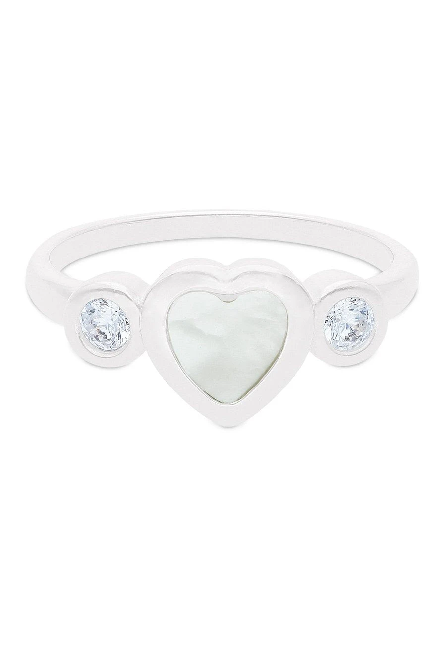 El diseño de la joya destaca por tener nácar en forma de corazón rodeada de dos circonitas que aportan brillo a la pieza. ¡Es un anillo que te durará siempre!