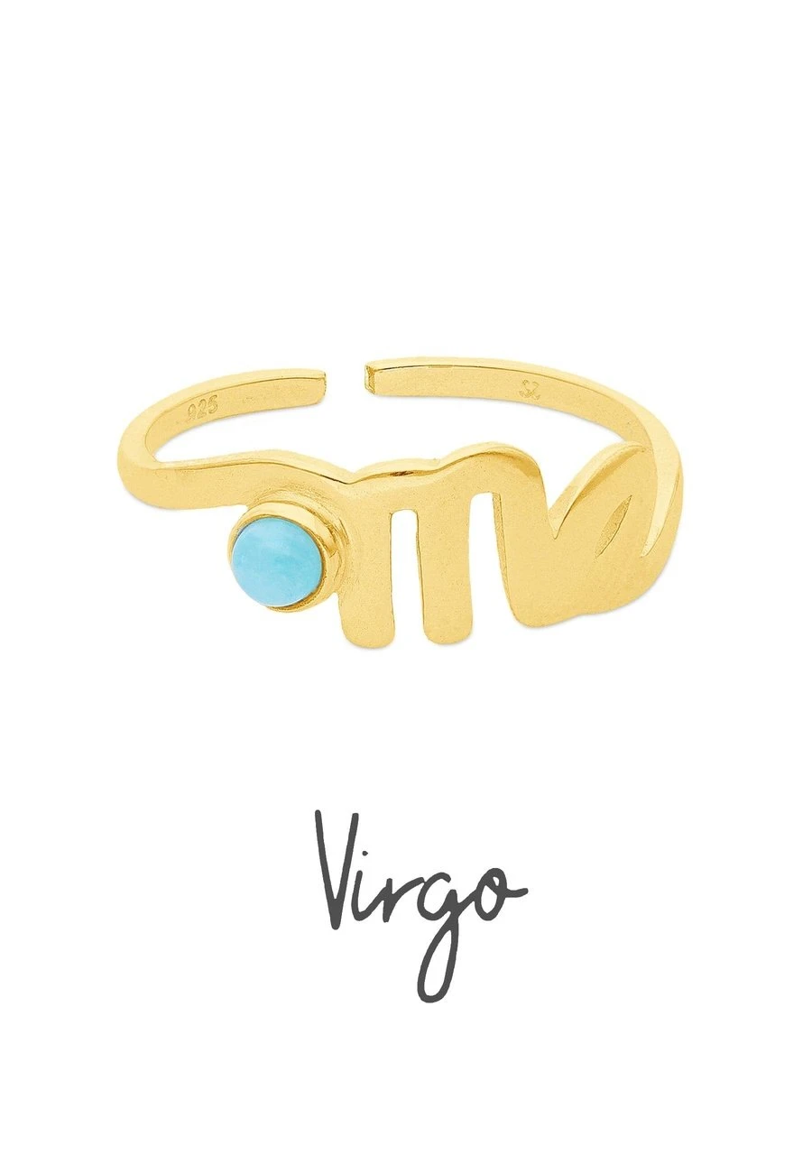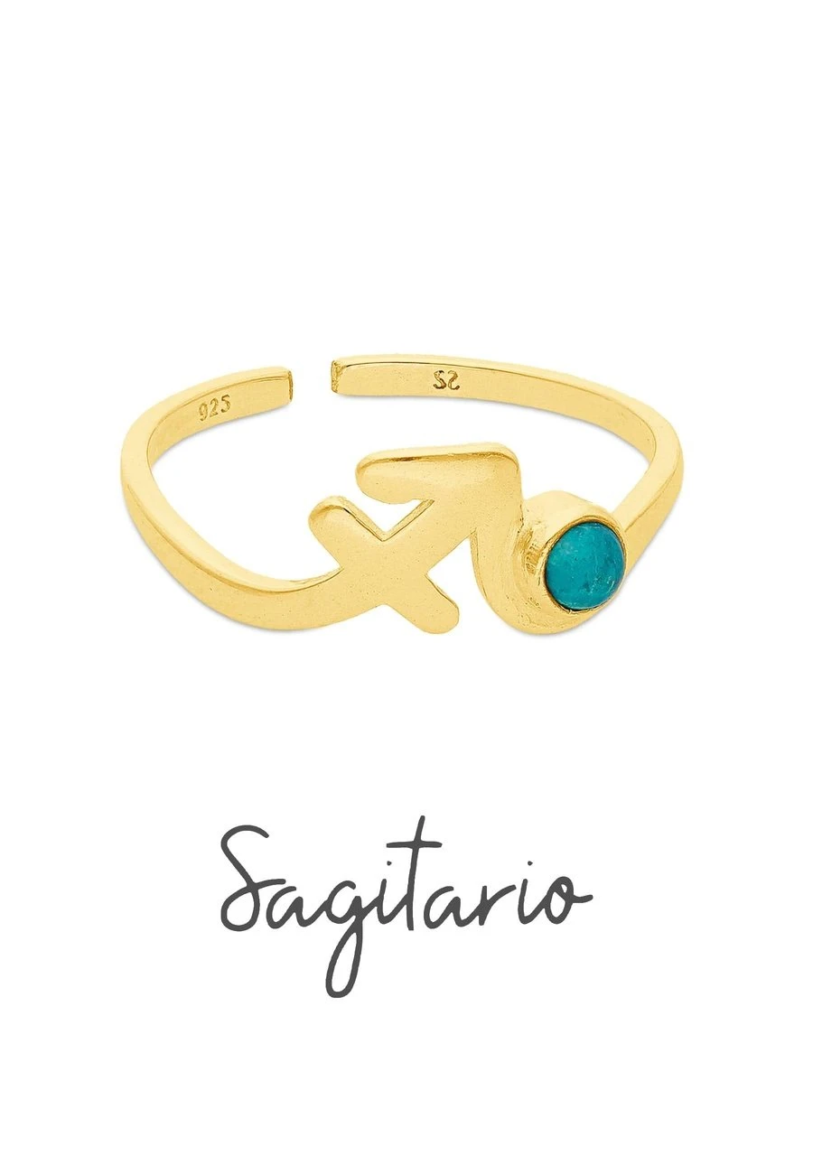 Anillo del zodiaco chapado en oro ajustable con piedras