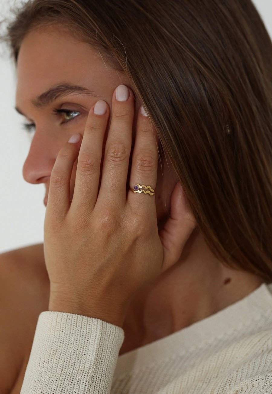 Anillo Acuario (Kumbha): Amatista, una piedra atrevida y elegante por su tonalidad violeta.