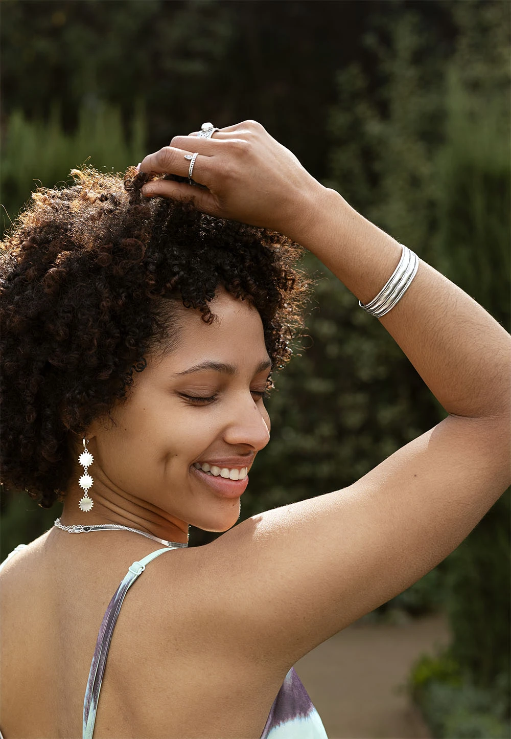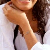 El brazalete YISHAI es abierto, por lo que puedes colocar la pulsera en la posición del brazo que más te guste y más cómoda te resulte.