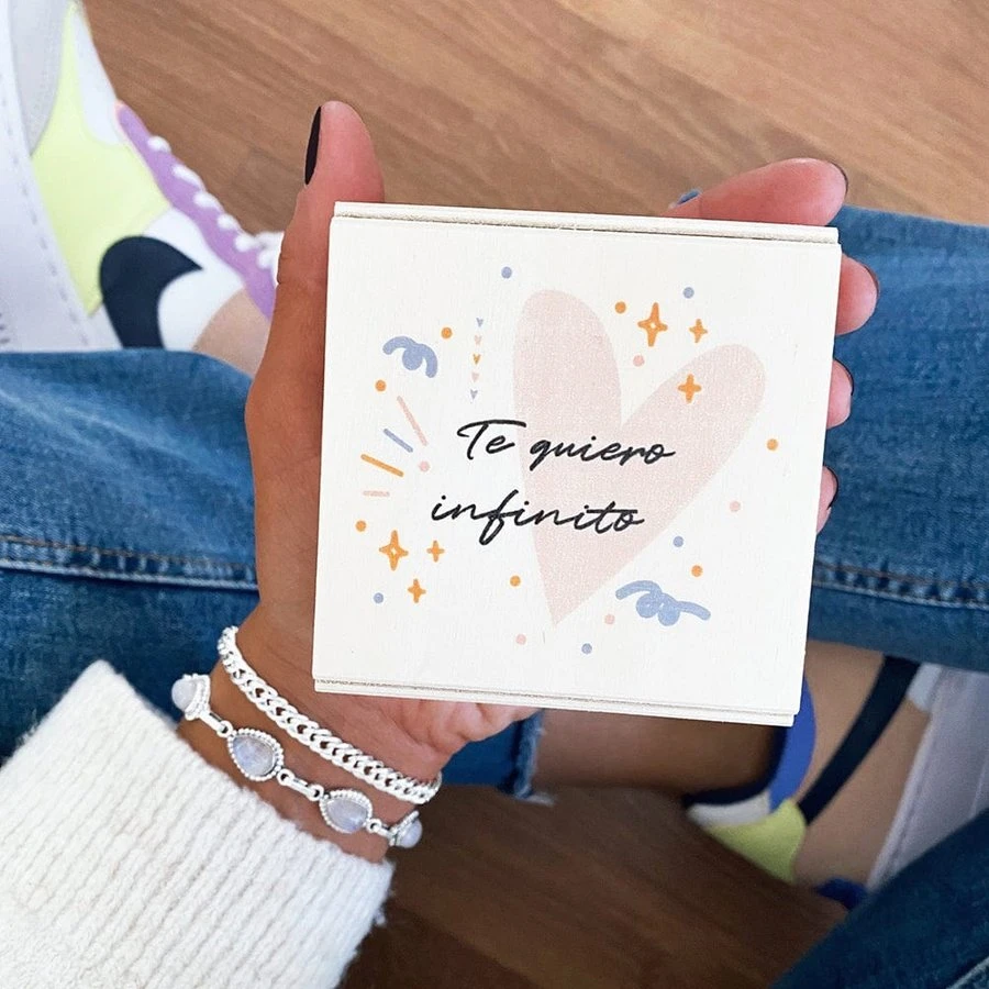 La caja ANANTATA es muy colorida y especial. En su diseño se destaca un gran corazón con la frase te quiero infinito. ¡Ideal para declarar tu amor!