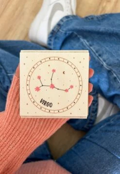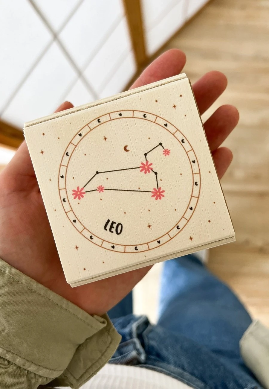 La caja del Zodiaco es una cajita de madera de chopo y cartón Kraft, ¡perfecta para guardar tus joyas del horóscopo!