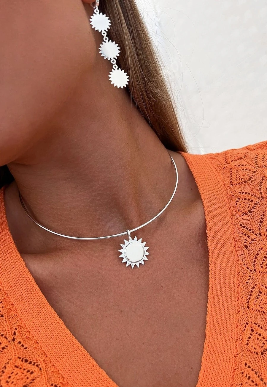 Este choker queda ajustado al cuello, y el sol queda colgando de él a una altura ideal.