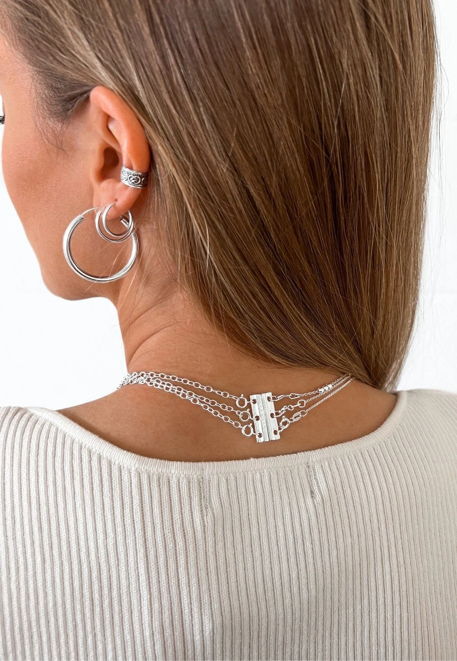 Está hecho de Plata de Ley 925 y tiene tres reasas para que puedas atar tus collares al cierre fácilmente. El cierre funciona a través de un imán, por lo que es supercómodo de usar. ¡Atrévete a crear combis de collares increíbles y olvidarte de los enredos de cadenas!