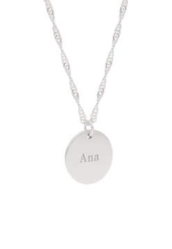 Este collar tiene una cadena de eslabones de tipo singapur y una chapa donde podrás grabar una palabra por delante y por detrás. Escribe la palabra que quieras grabar en el apartado “texto”, puedes poner minúsculas, mayúsculas, números… Se marcará la palabra tal cual lo escribas en esa casilla. ¡Te encantará!