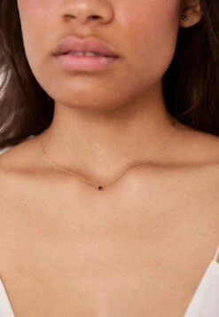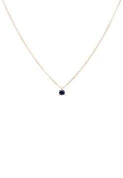 El zafiro, con su deslumbrante tono azul, cuelga delicadamente del collar, añadiendo un destello de color y un toque de lujo discreto. Su tamaño modesto, sin embargo, le da una presencia encantadora sin ser abrumadora.