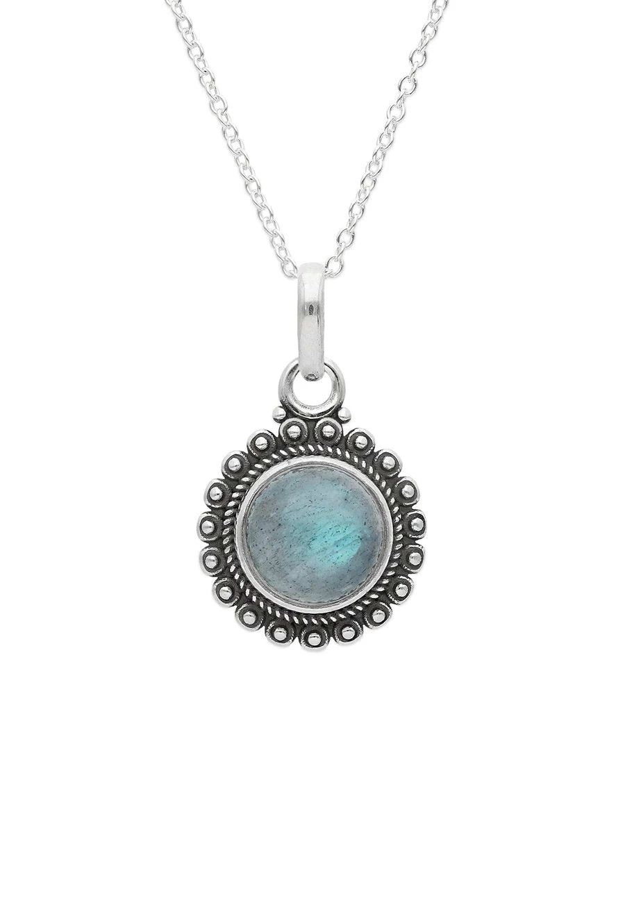 El collar DISHA es una joyita hecha a mano con Piedra Labradorita y Plata de Ley 925. Presenta un rango de colores infinito, cada tonalidad es desigual y única.