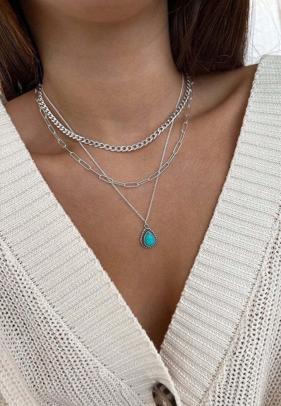 El collar Katam es una pieza muy especial. Su piedra nos recuerda a una gota de agua, y su borde en Plata de Ley 925 hace un contraste muy acertado.
