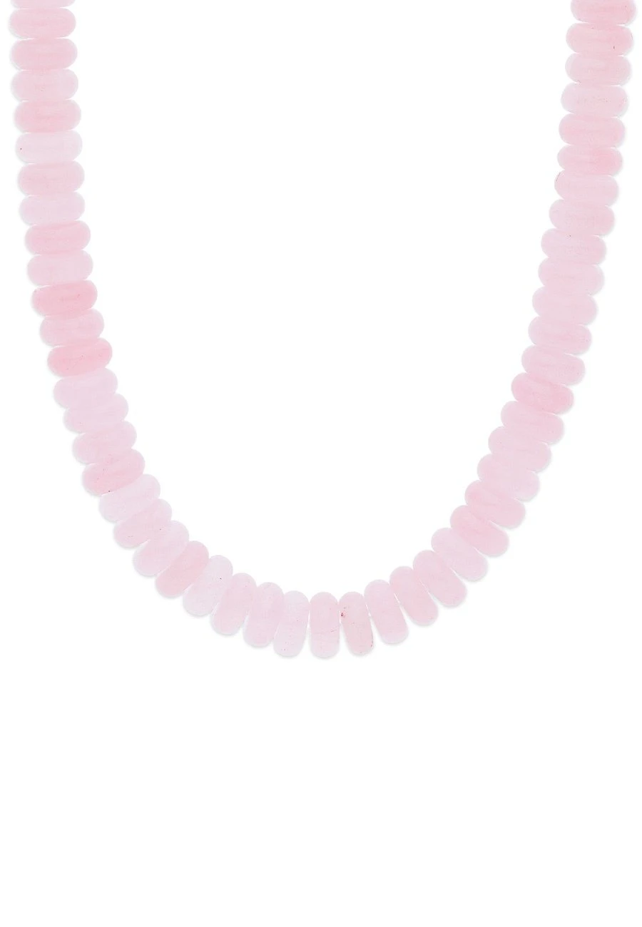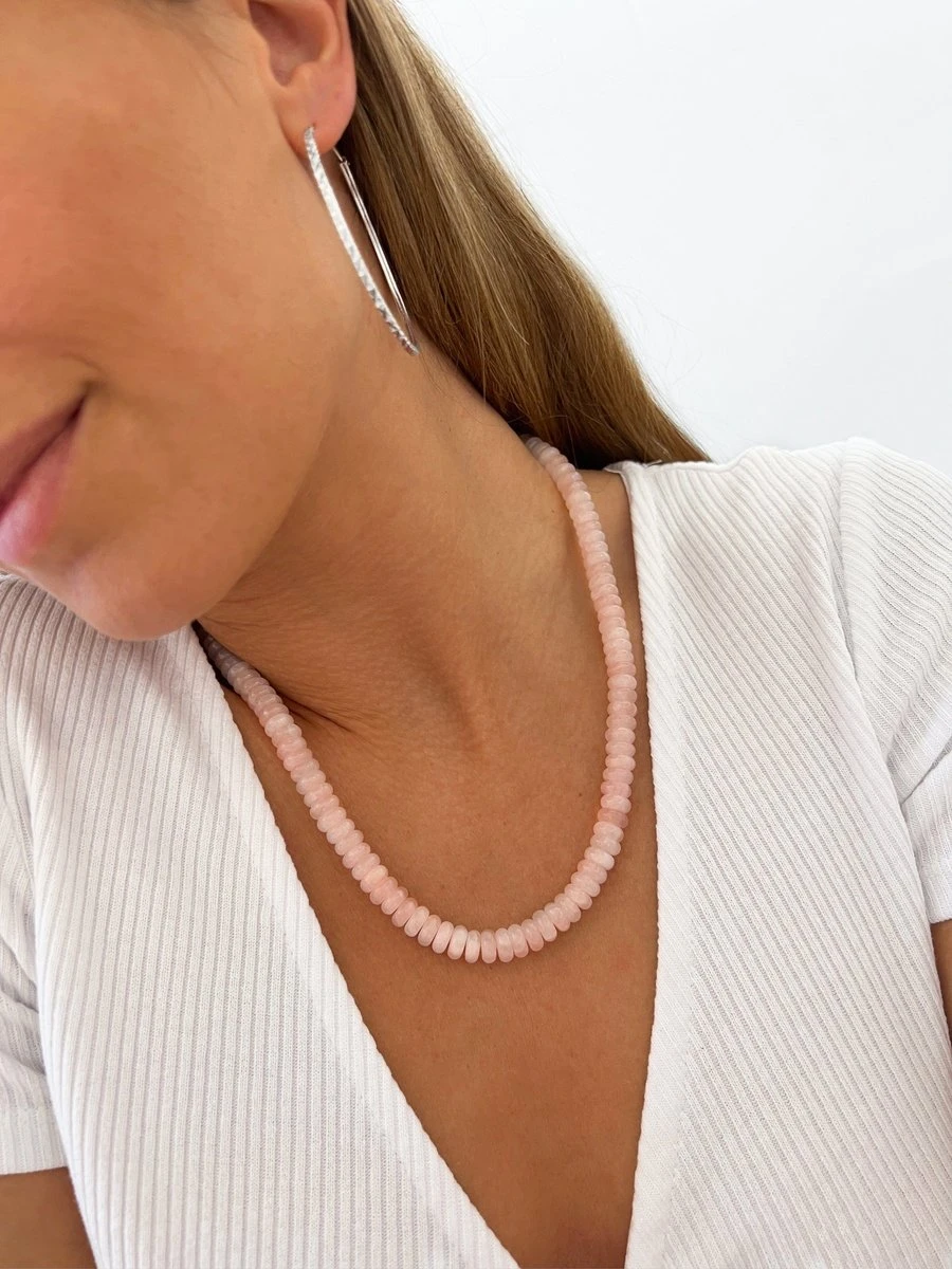 El collar KUMAR es de Cuarzo Rosa con acabados en Plata de Ley 925. Al ser de piedra natural, cada piedra tiene un color, vetas y tamaño distinto. ¡Cada collar es único!