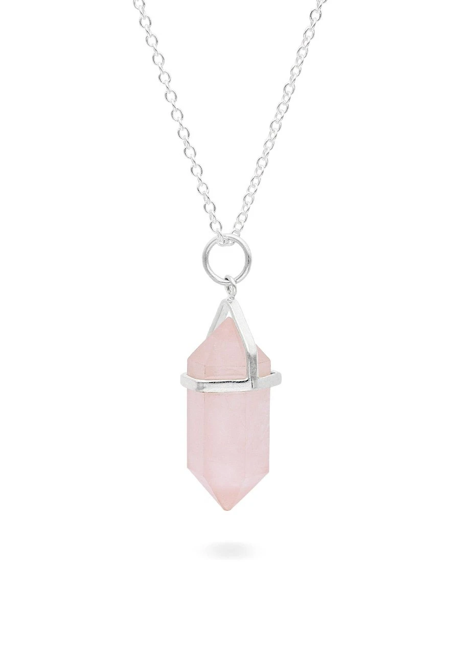 El collar LANGAR es una joyita formada por una cadena fina y una piedra preciosa de Cuarzo Rosa en su centro. Está hecho a mano y en Plata de Ley 925.