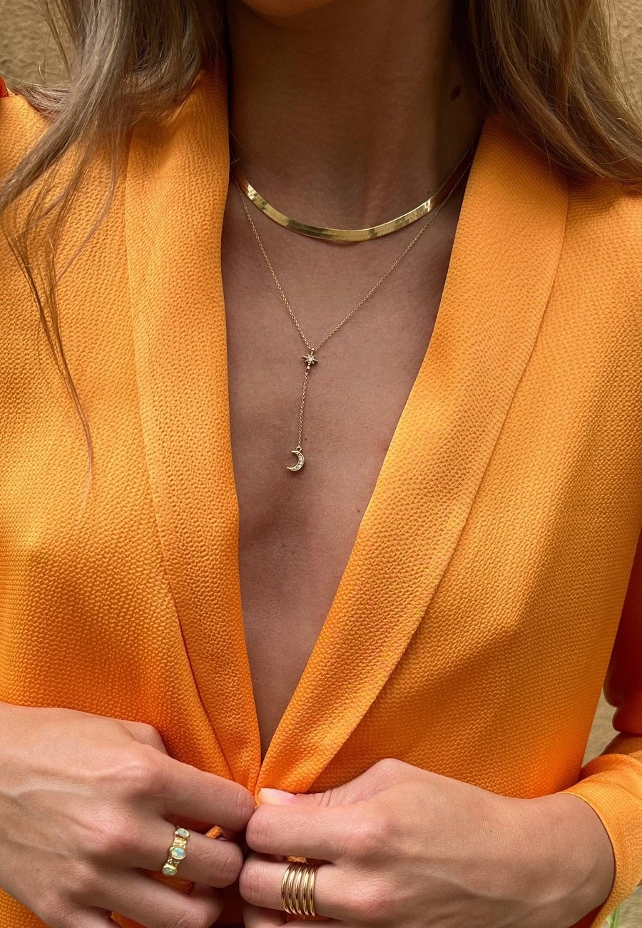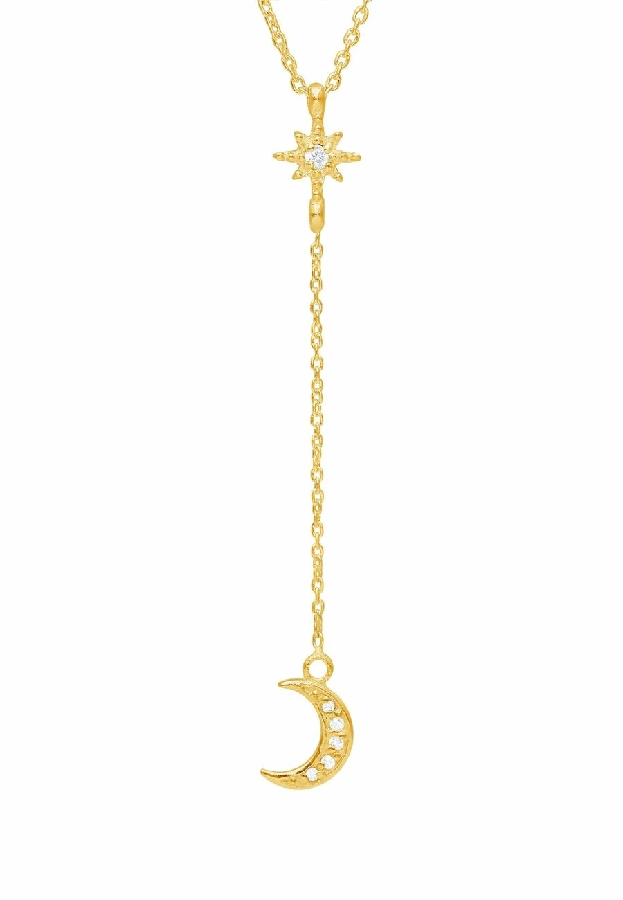 Collar Moksha chapado en Oro con Luna y Estrella de Circonitas