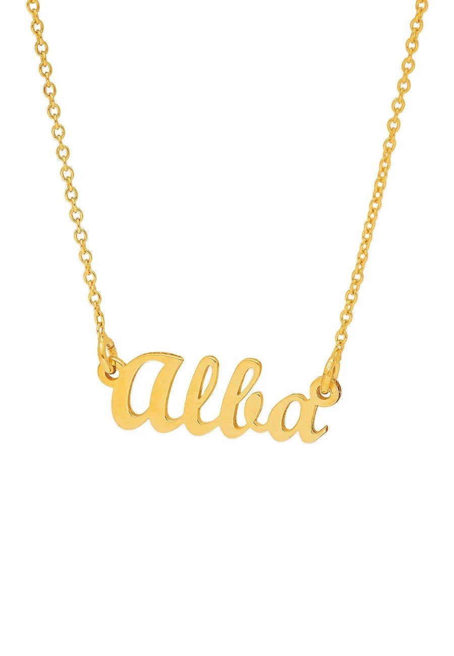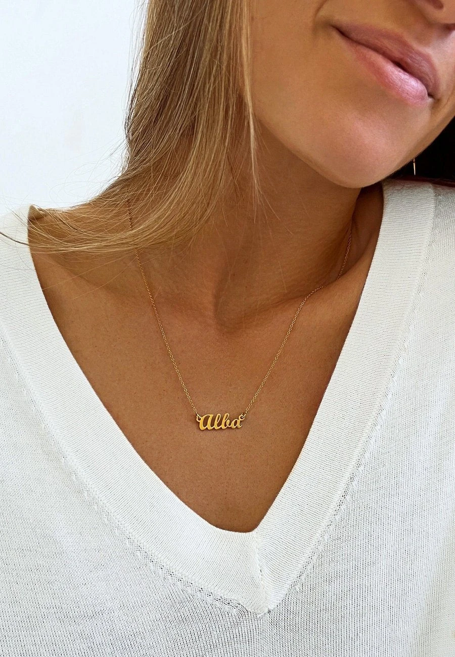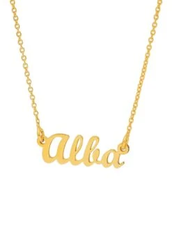 El collar NAMA está hecho de Plata de Ley 925 y chapado en oro de 22 quilates. Es un collar con una fina cadena de eslabones y un nombre a personalizar. Tendrás que escribir la palabra que quieras en el apartado “texto” (el máximo son 9 caracteres).