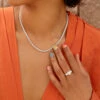 Este collar es ideal para combinar con los pendientes Saur, creando un conjunto armonioso y lleno de estilo. La combinación del sol y la piedra luna añade un toque moderno y versátil.