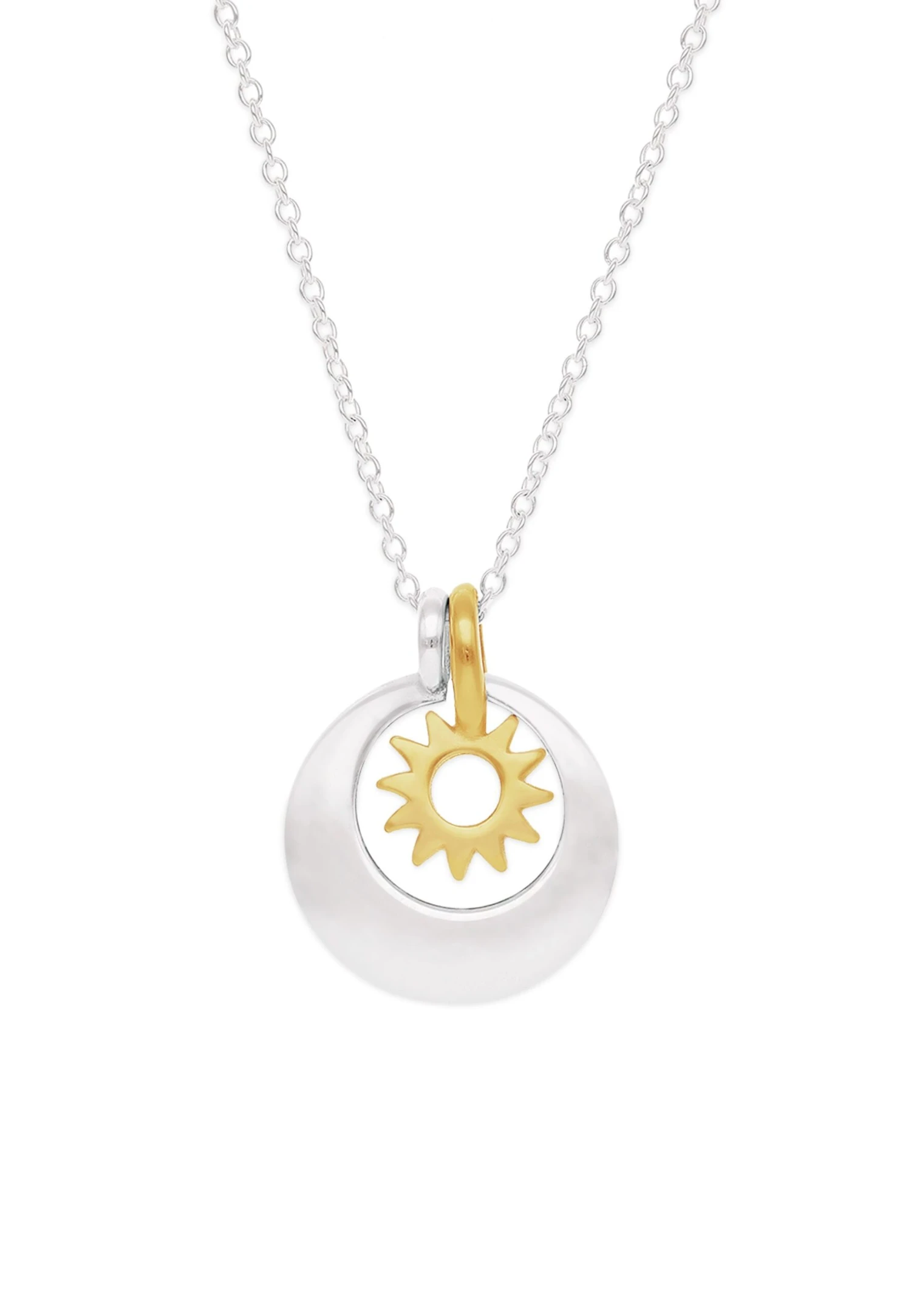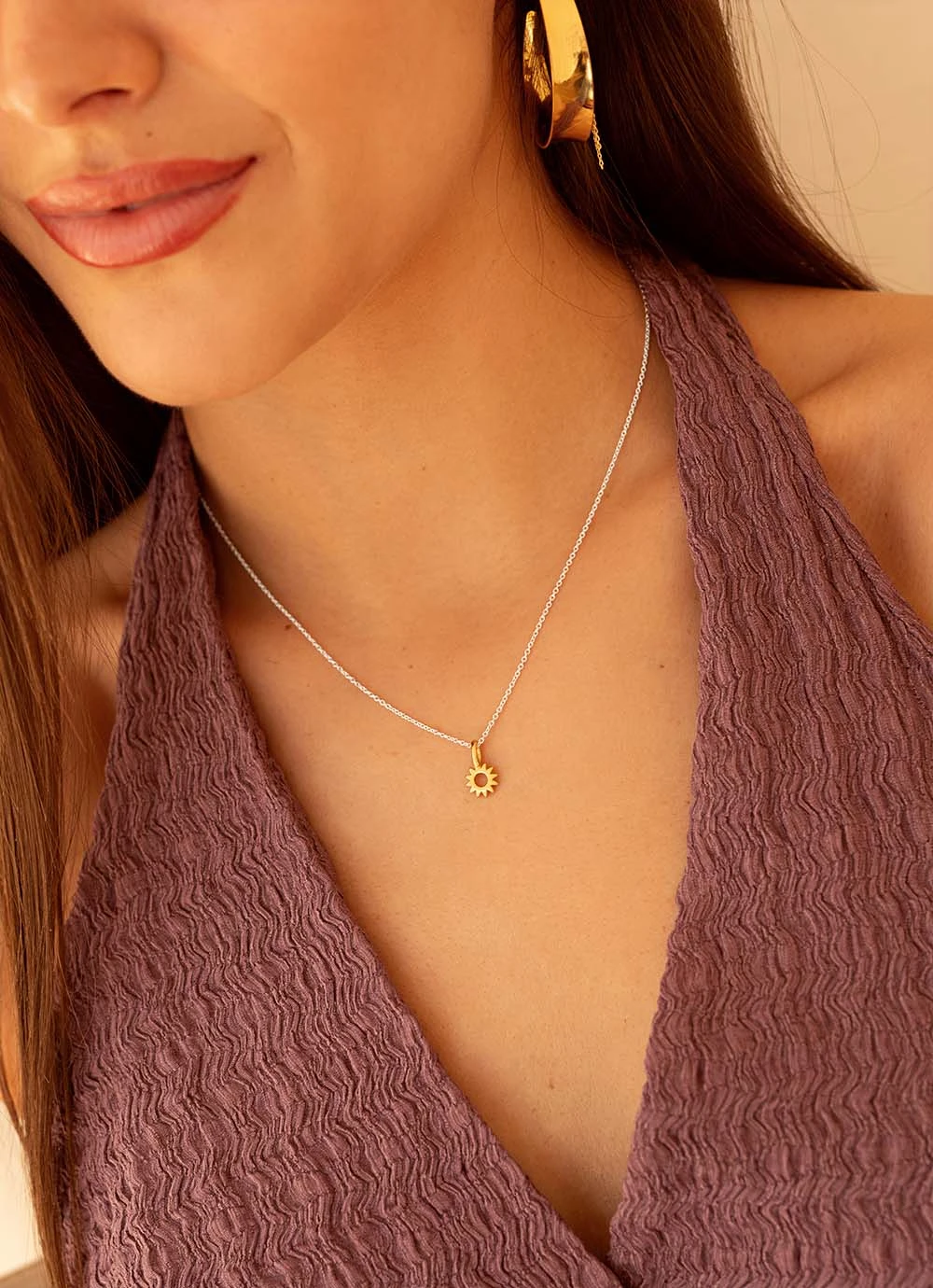 El collar Saja de plata de ley 925, destaca por ser más que una joya, la verdadera magia comienza con la unión entre el sol y la luna: el sol encaja de manera perfecta en el interior de la luna. Este simbolismo especial permite separar ambas piezas y compartirlas con alguien querido, creando un lazo significativo.