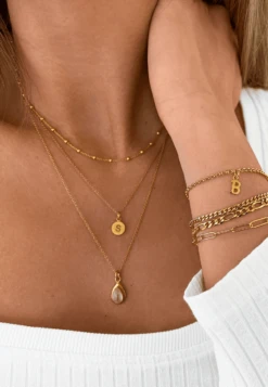 El SHAB CHAPADO EN ORO es un collar perfecto para regalar, ¡es un básico que no fallará! Escoge la inicial que más te guste, para ti o para regalar, y combínalo con otras joyas personalizables chapadas en oro.