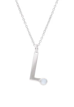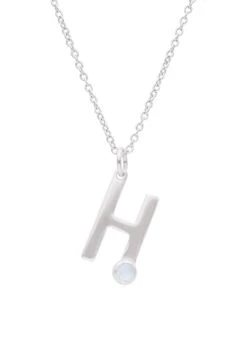 El collar SHURUAATEE está formado por una fina cadena de eslabones de plata con el colgante de una inicial. La inicial de este collar está hecha de Plata de Ley 925, acompañada por una piedra luna redonda en una de las extremidades de cada letra. Podrás elegir la letra que quieras de la A a la Z desde el selector.