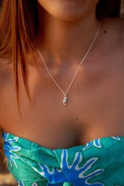El collar SLOKA es una gargantilla de Plata de Ley 925 formada por una cadena fina y un colgante en forma de Caballito de Mar.