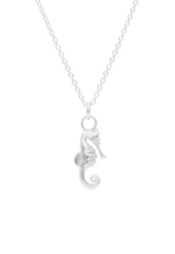 El collar SLOKA es una gargantilla de Plata de Ley 925 formada por una cadena fina y un colgante en forma de Caballito de Mar.