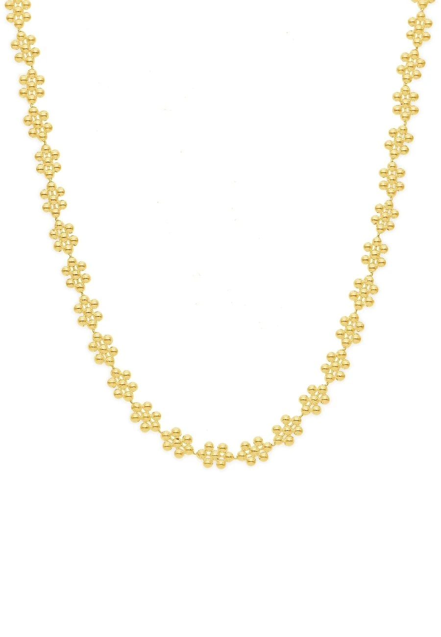 No te pierdas este delicado collar Vetta de plata de ley 925 y bañado en oro, con su diseño floral. Tiene unas pequeñas bolitas que en su conjunto forman el diseño de una preciosa margarita.