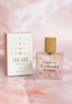 La FRAGANCIA San Saru acompaña cada uno de vuestros pedidos y ahora también puede acompañarte a ti en tu día a día. Este ligero perfume, con suaves notas cítricas, se equilibra a la perfección con el delicado aroma empolvado de las rosas y el jazmín. ¡Nos encanta!