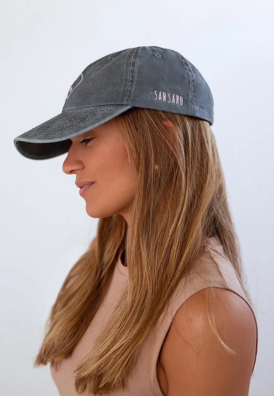 ¡Descubre nuestra increíble gorra Purusha de color gris oscuro con un diseño encantador del símbolo del yin yang en forma de corazón! Está hecha con algodón 100% vegano, lo que significa que no se ha utilizado ninguna materia prima de origen animal en su fabricación.