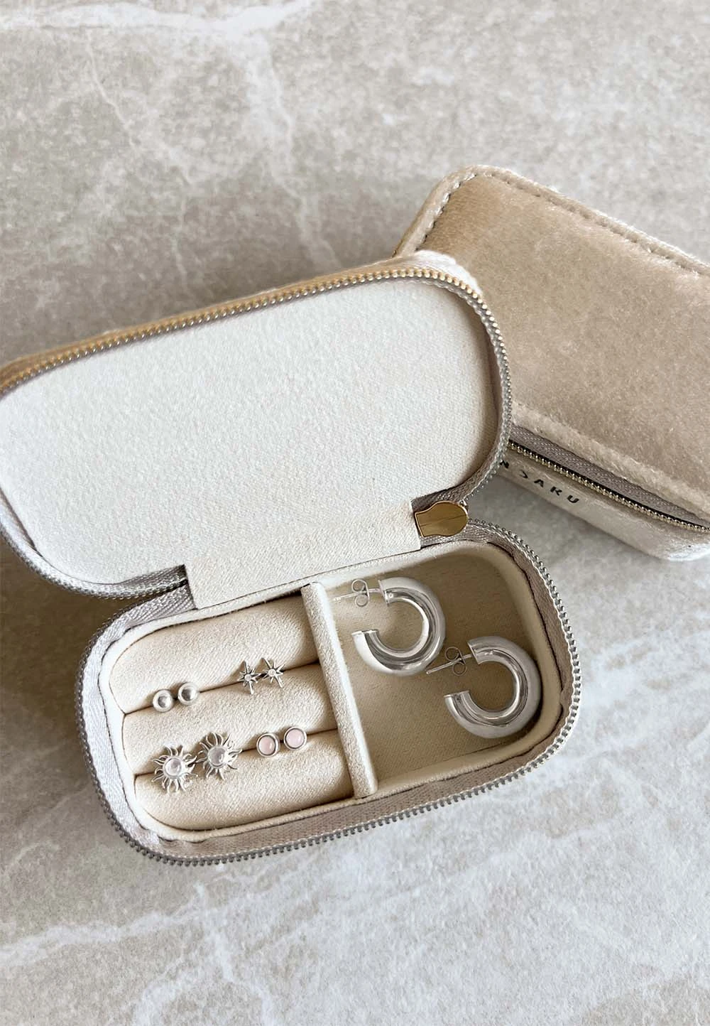 El diseño de este mini joyero Shanaya beige, es encantador hace que sea fácil encontrar ese anillo especial que deseas usar en cualquier momento del día. Además, su aspecto coqueto y moderno lo convierte en un accesorio decorativo.