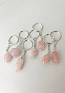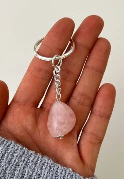 El AVANI es un llavero con piedra Cuarzo Rosa que aportará un toque elegante y de color a tus llaves. ¡Te encantará!