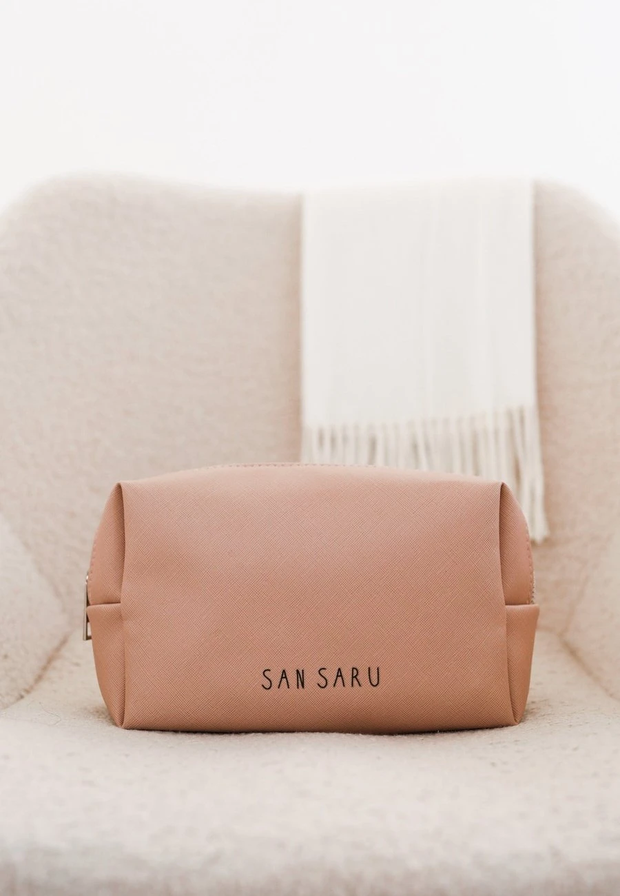 El neceser ASHNA es de color rosa palo y tiene un cierre con cremallera, superpráctico para llevarlo todo de forma segura. Además, en su interior hay un pequeño bolsillo perfecto para guardar las cositas más pequeñas.