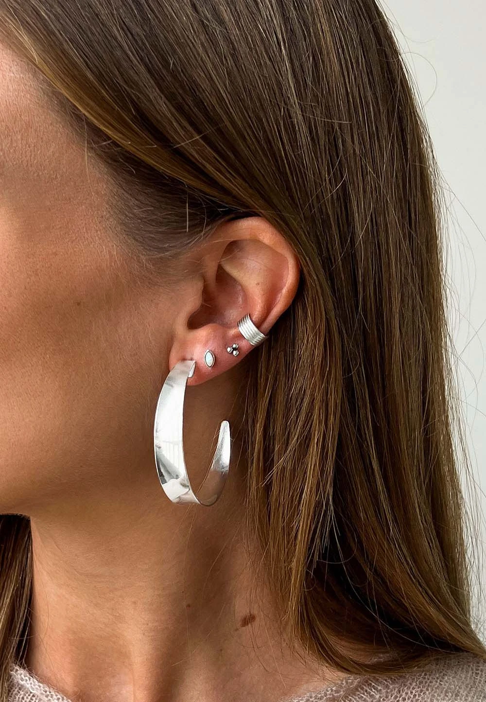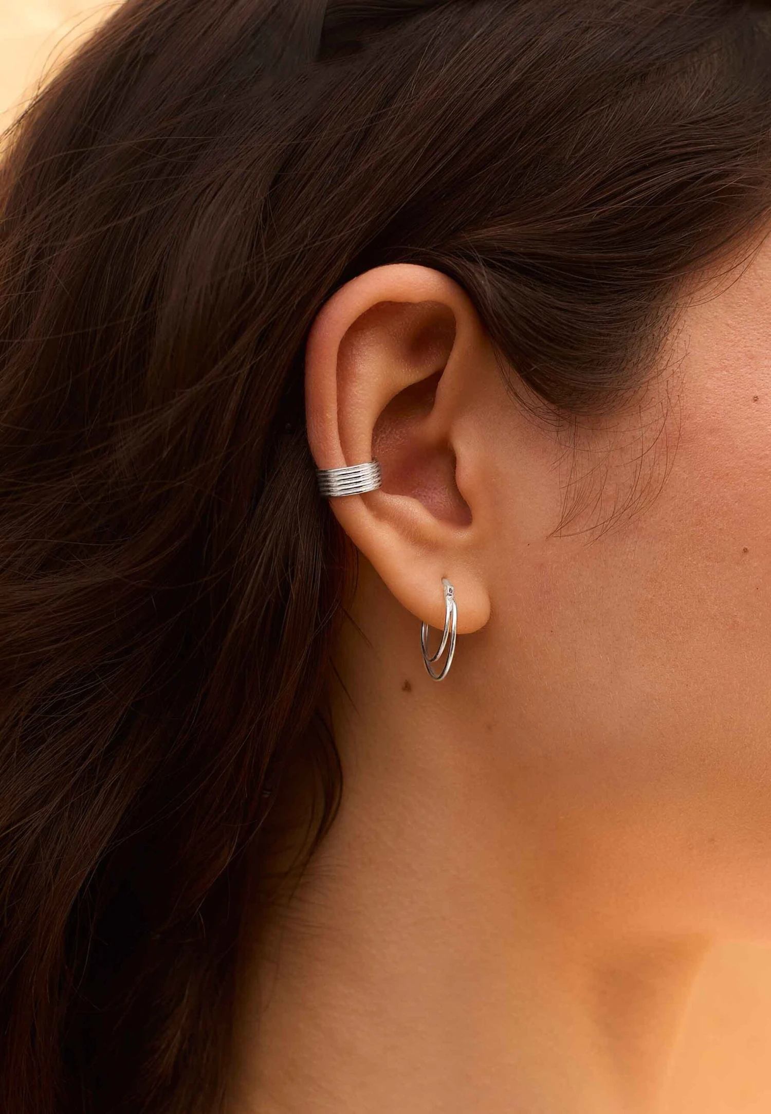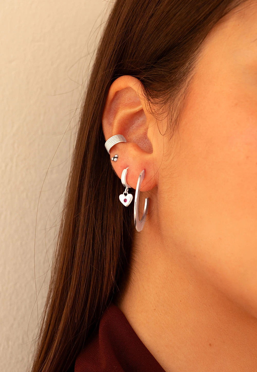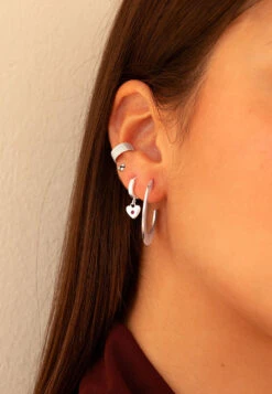 El pendiente DHAARI es un pendiente sin agujero, un Ear Cuff, lo que no requiere tener un agujero a la altura del cartílago para llevar este precioso pendiente.