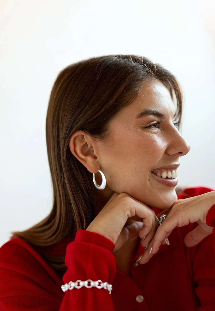 Los pendientes ALISHA (30mm) son aros superllamativos y bonitos. Son lisos y destacan por su grosor en la parte inferior. Lo mejor de todo es que son ligeritos y no pesan gracias a las propiedades de la Plata de Ley 925. ¡Los podrás llevar muy a gusto!