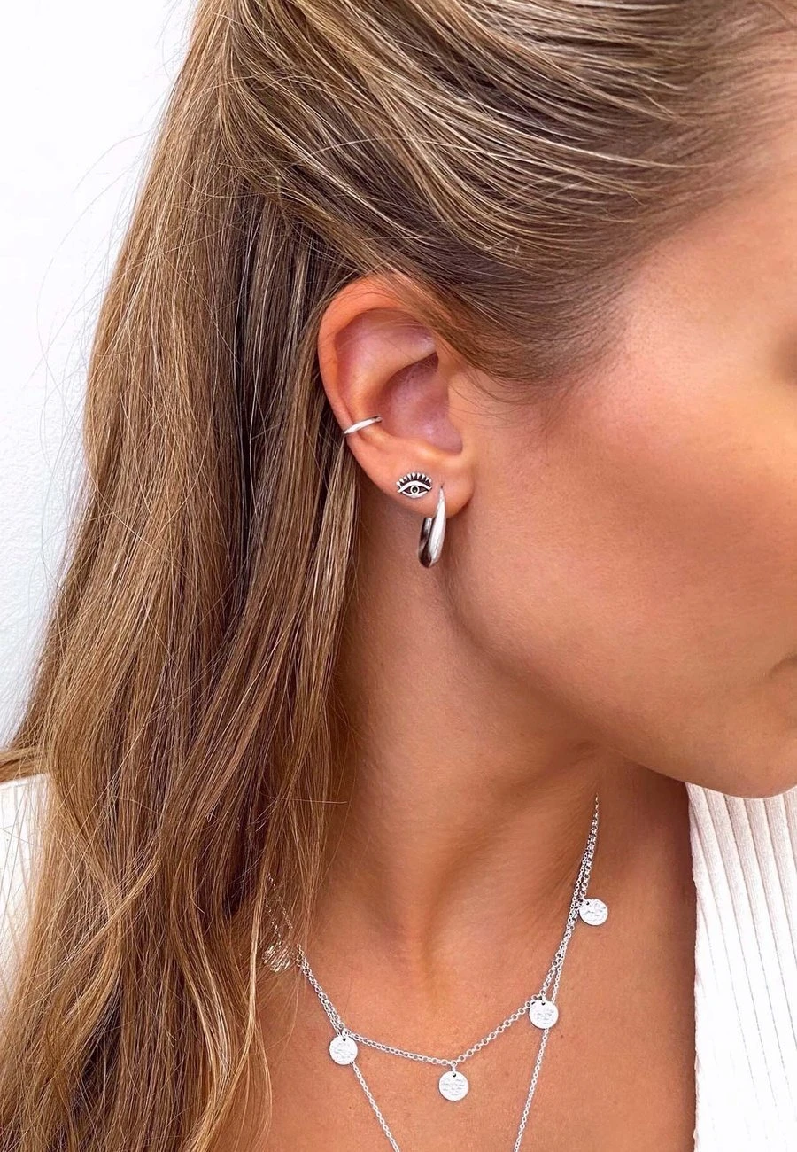 Los pendientes ANKHEN son unos pendientes con forma de ojos. Son unos pendientes superoriginales y bonitos. Su diseño es sencillo, se conforma por una serie de líneas de Plata de Ley 925 que crean la forma perfecta del ojo.