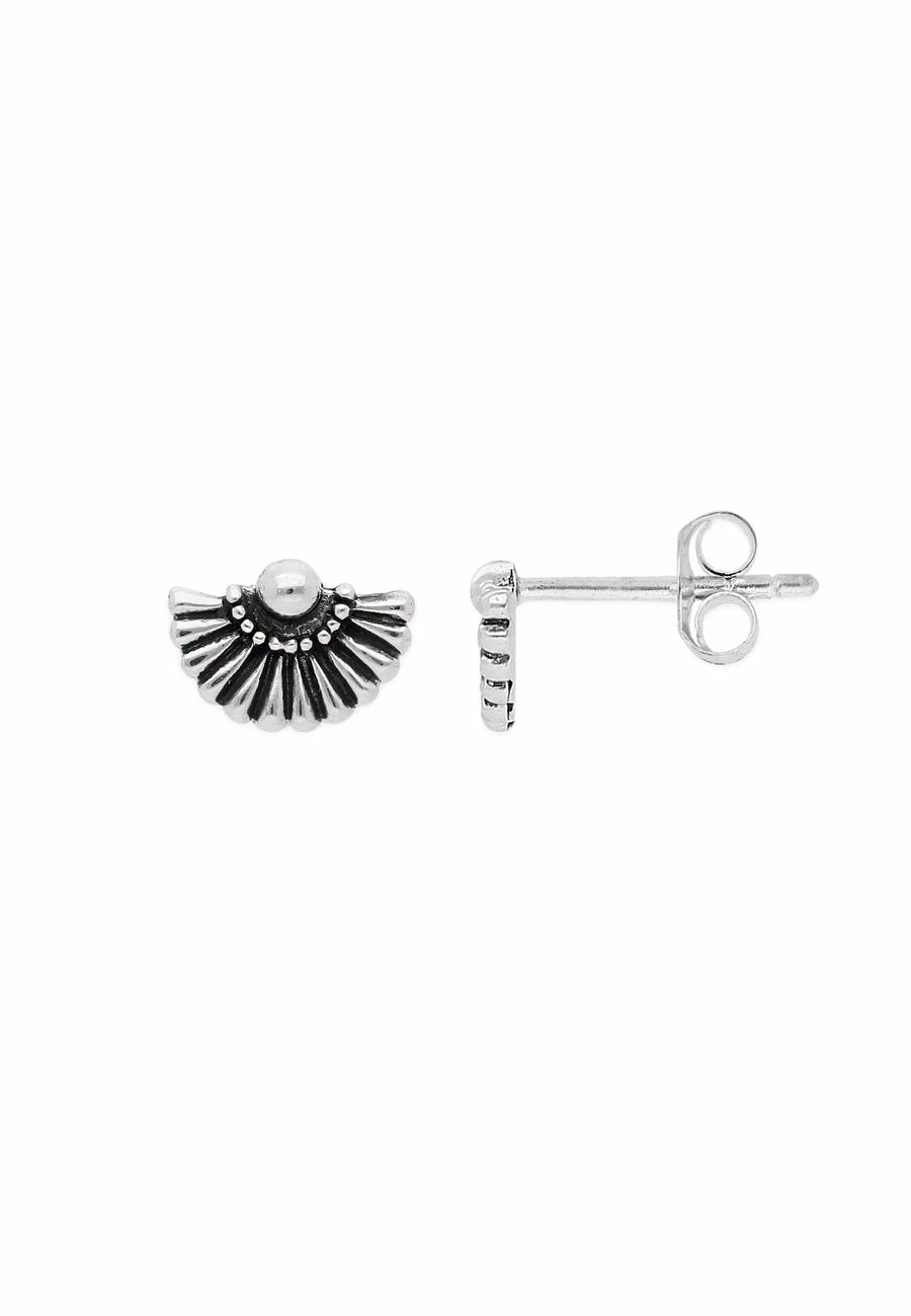 Los ARUSH están hechos en Plata de Ley 925. Su diseño está formado por una semicircunferencia de plata con líneas en relieve, y una pequeña bolita en el centro del pendiente. Su forma de abanico los hace muy originales y divertidos.