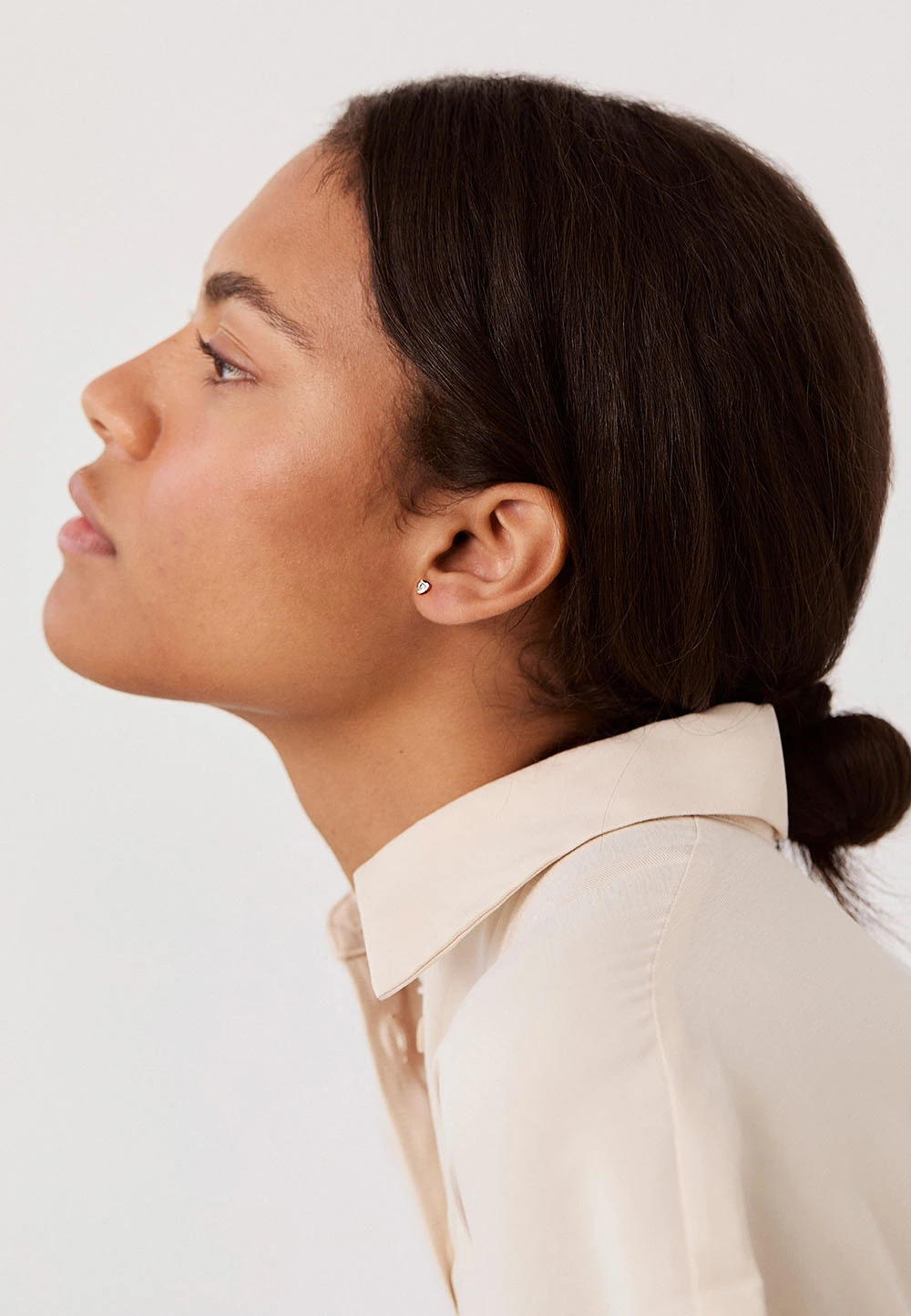 Este adorable pendiente Atria de oro blanco de 9k es un símbolo de amor y elegancia en su forma más dulce. El diseño en forma de corazón es clásico y atemporal, pero con un toque de modernidad que lo hace único.