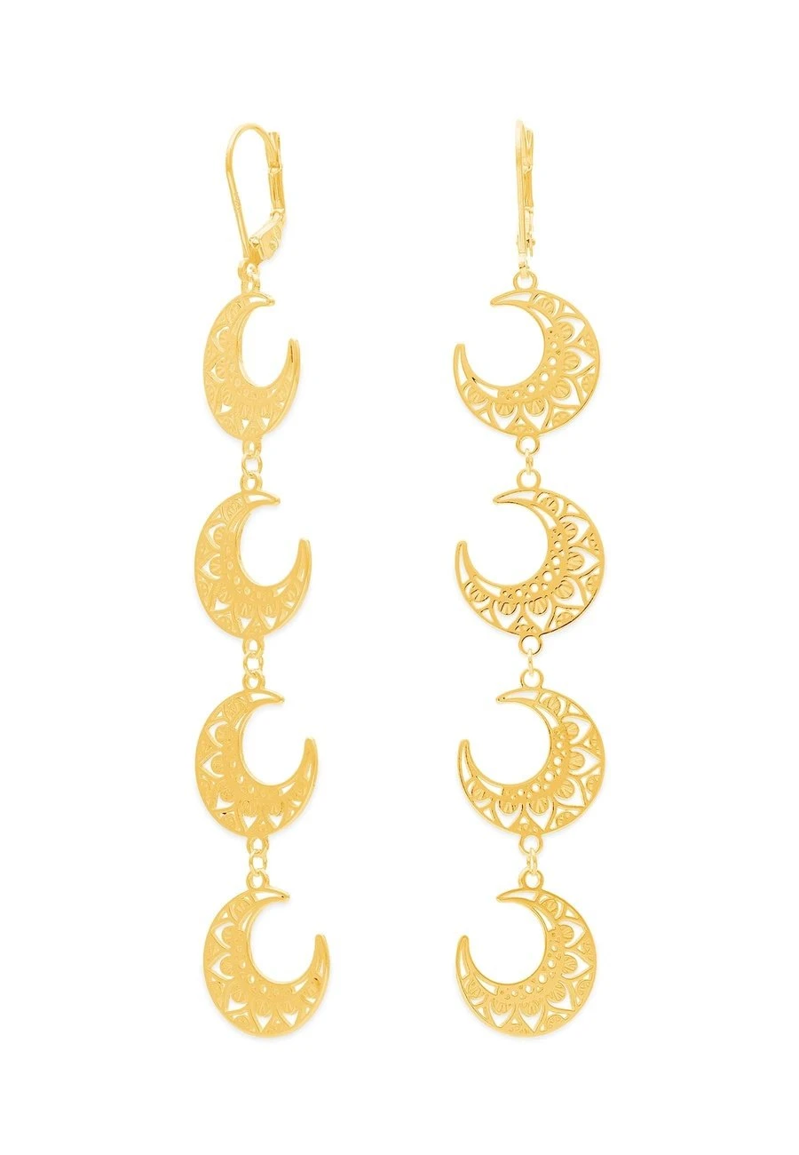 ¡Destaca con estilo con nuestros pendientes de cuatro medias lunas Chaand! Estos pendientes de plata de ley 925 y chapados en oro son el complemento perfecto para cualquier ocasión. Cada pendiente presenta cuatro medias lunas delicadamente entrelazadas, creando un diseño elegante y moderno.