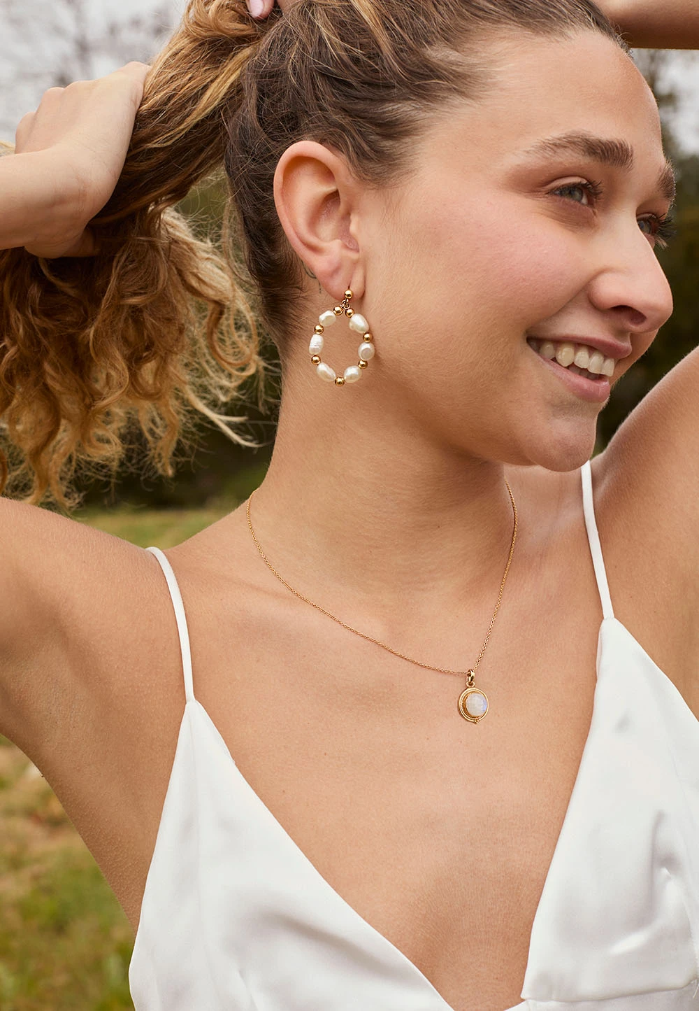 ¡No te pierdas los aros de perlas Chitra chapados en oro, tienen la medida perfecta para que los puedas llevar largas horas durante el día.