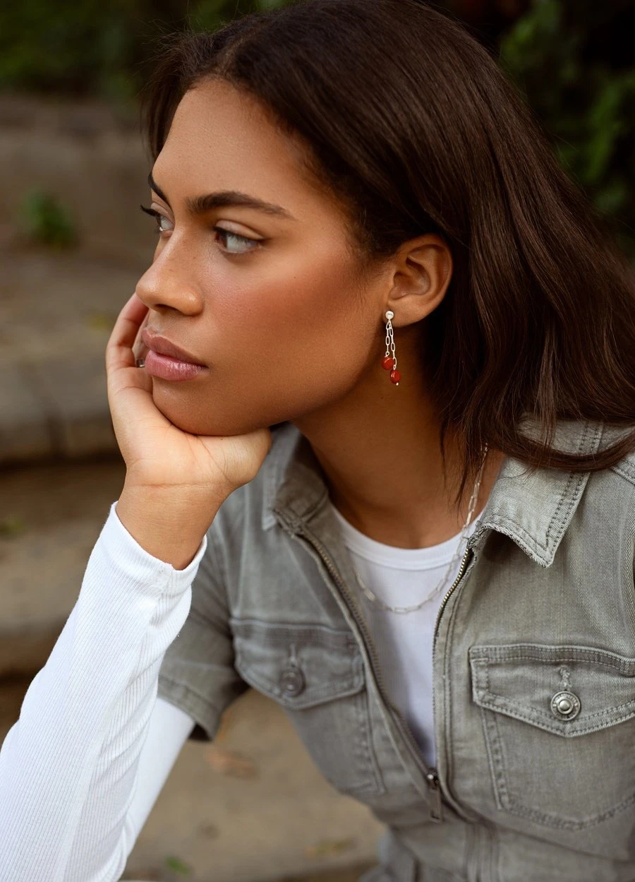 En el extremo de cada cadena, encontrarás una hermosa piedra de jaspe. El jaspe es una gema que se presenta en una variedad de colores y patrones, lo que le da a cada pendiente su propia apariencia única.
