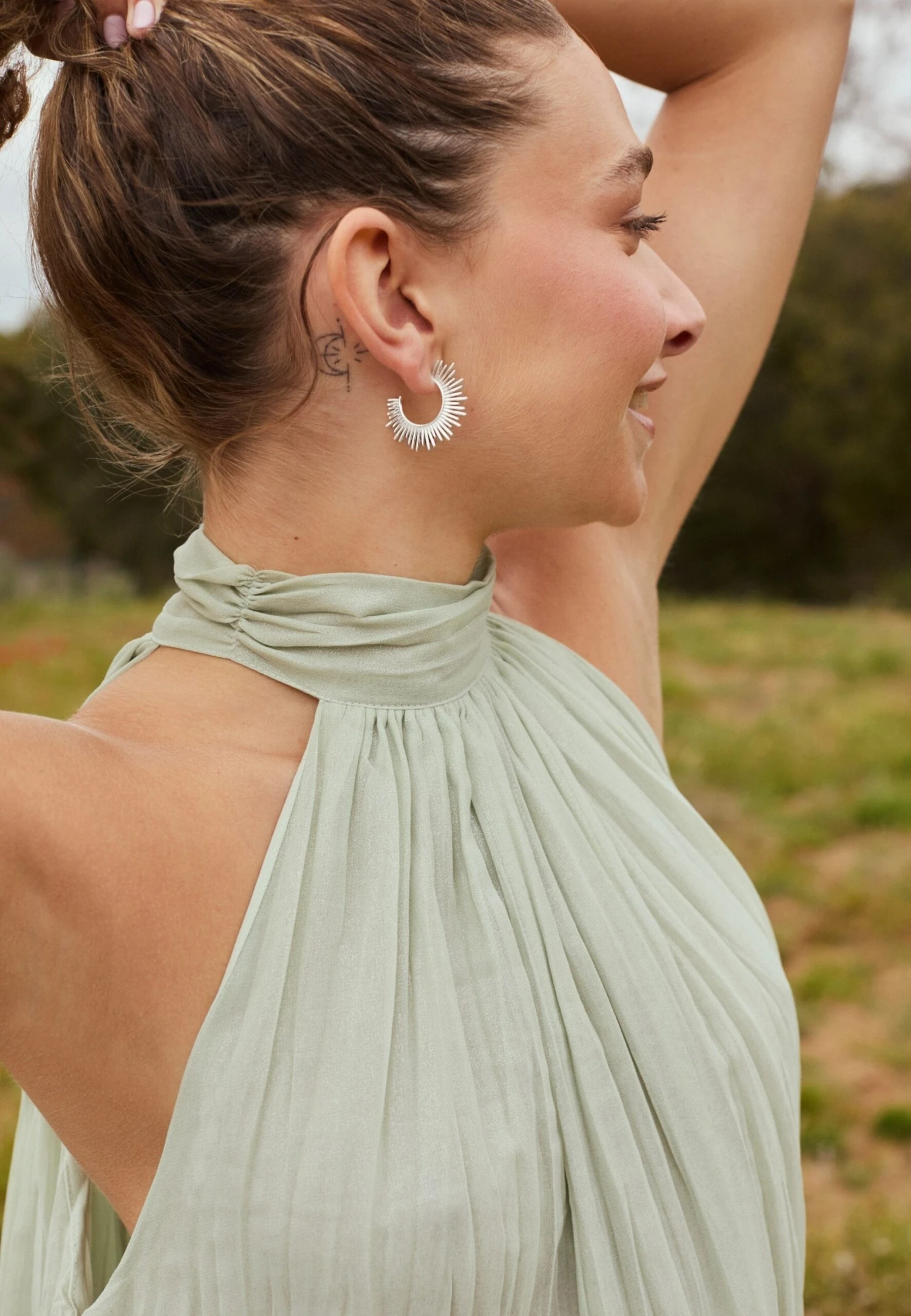 Estos pendientes tienen una esencia festivalera que te hará destacar en cualquier ocasión. Son perfectos para añadir un toque moderno y rompedor a tu look formal.
