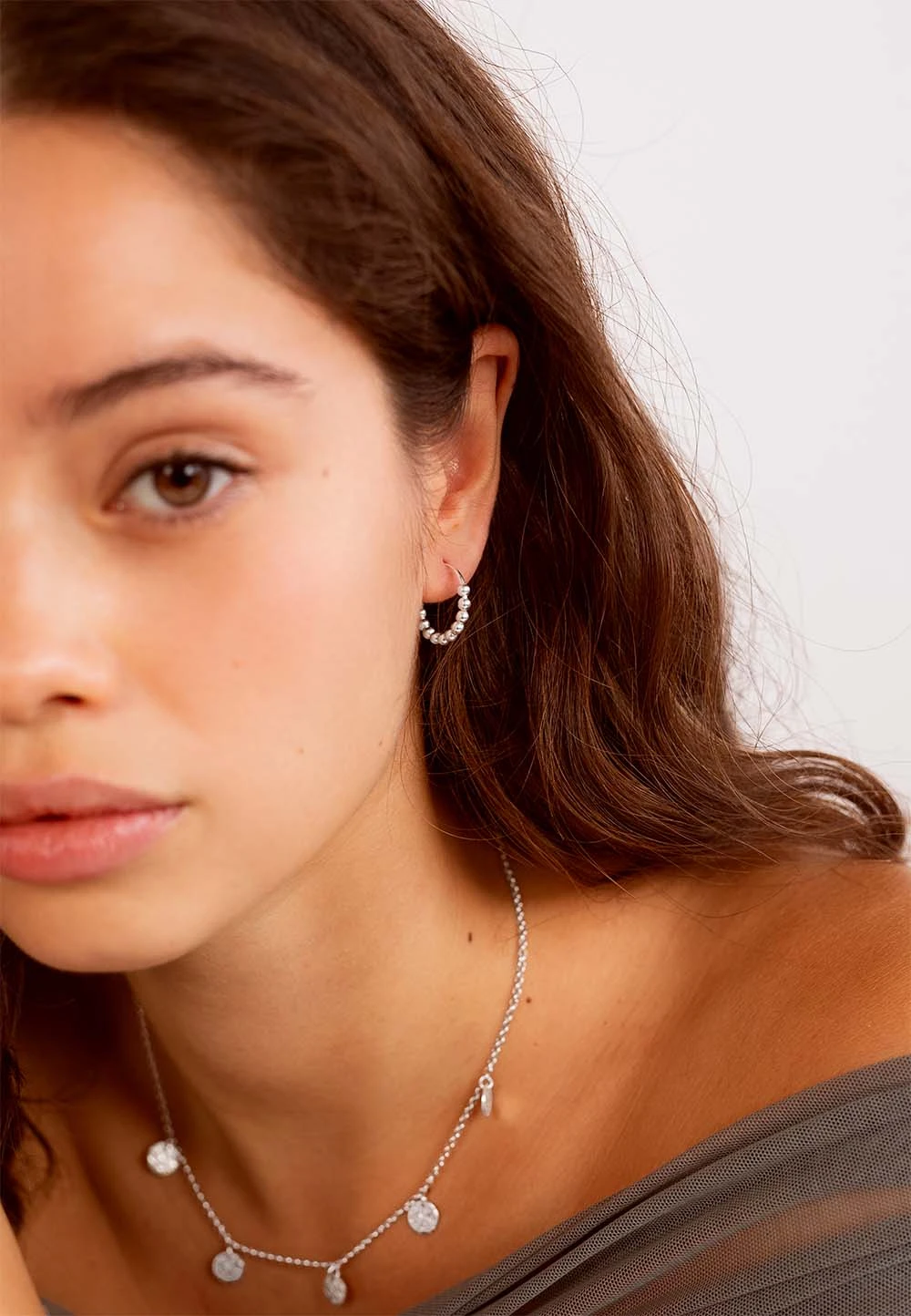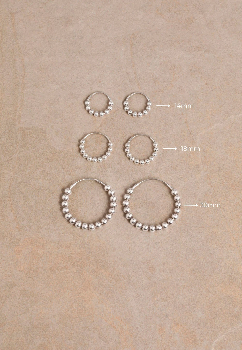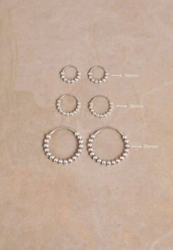 Los pendientes GEND tienen un diseño superinnovador y desde que salieron han gustado muchísimo. Constan de unos aritos de plata con pequeñas bolitas por casi toda la circunferencia del aro. También tenemos el modelo más pequeñito, el modelo GEND (14mm).
