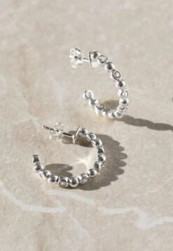 Los aros semiabiertos GOTAMA están elaborados con plata de ley 925, lo que asegura su durabilidad y resistencia.